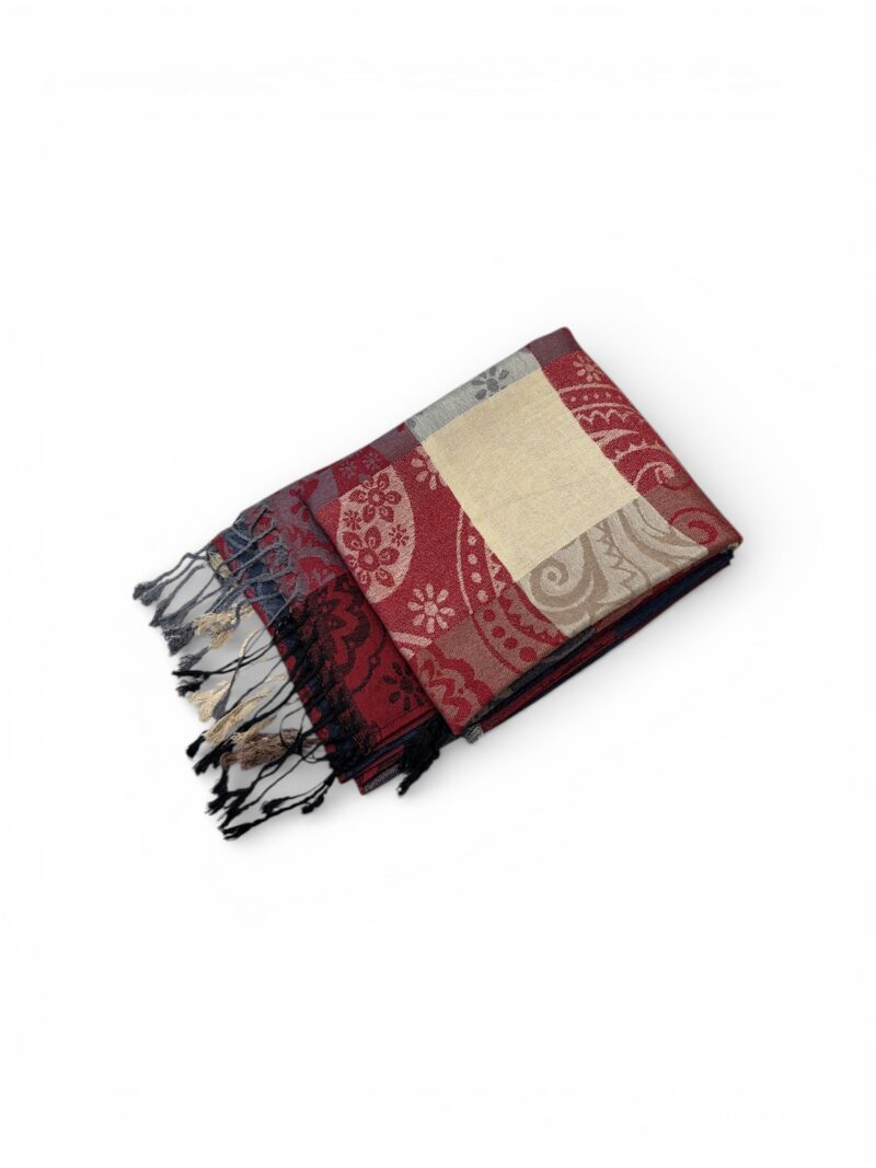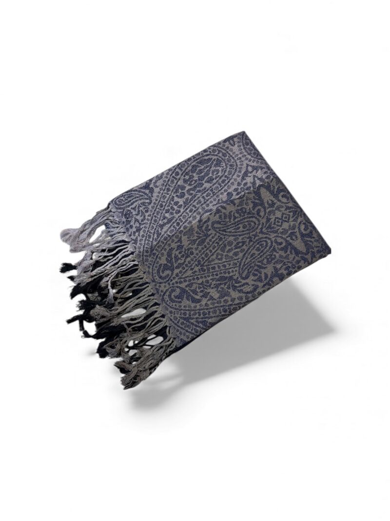 Sciarpa raffinata in tessuto morbido e avvolgente, caratterizzata da un’elegante fantasia jacquard a motivi floreali e ornamentali. La combinazione di tonalità neutre e calde – tra grigio, beige e marrone – la rende estremamente versatile, perfetta per completare sia look casual che più sofisticati. Le frange sul bordo aggiungono un tocco di stile e movimento, donando personalità all’accessorio. Ideale per le stagioni più fresche, è pensata per chi ama un’eleganza discreta ma ricercata.